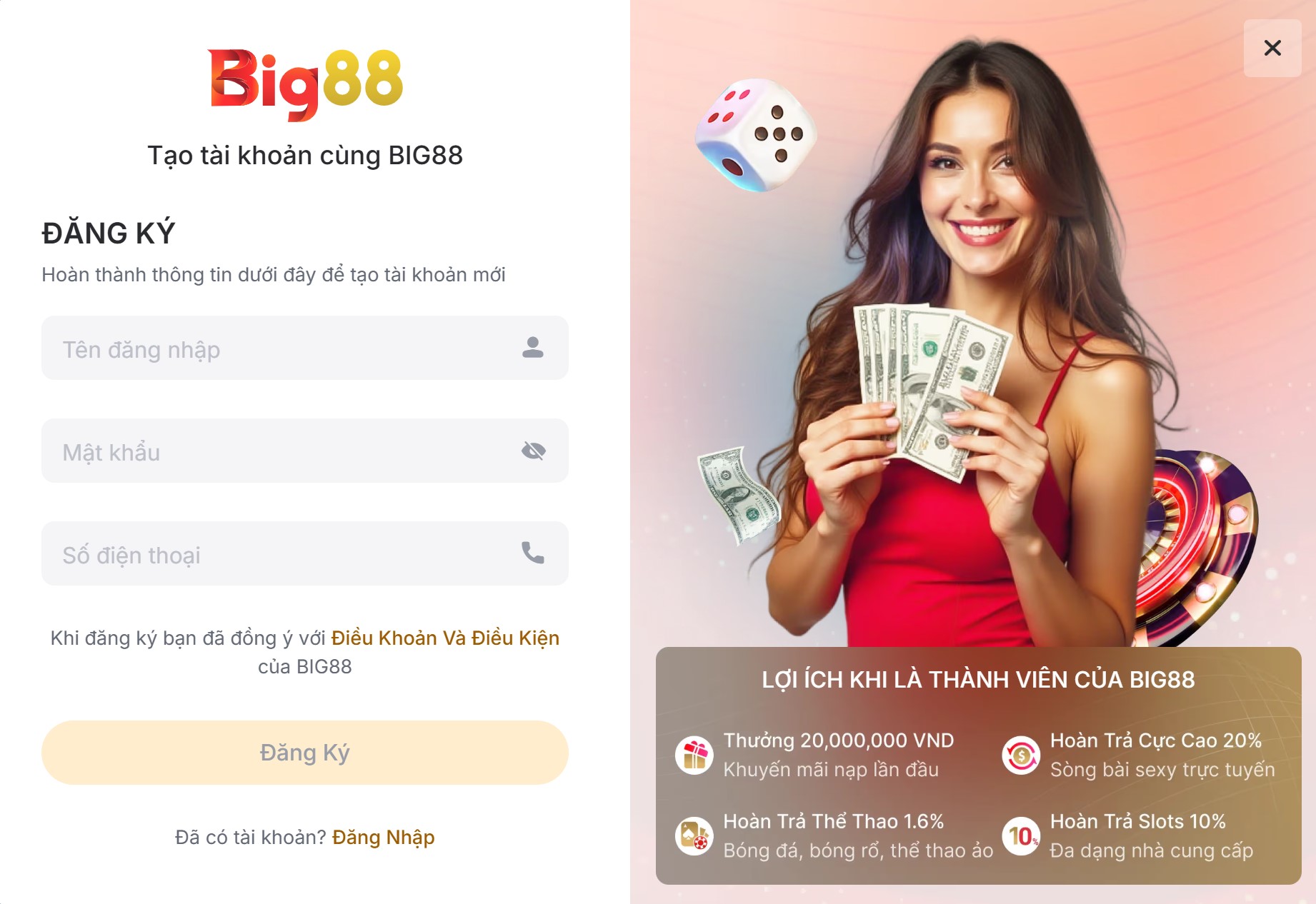 Hướng Dẫn Đăng Ký Tài Khoản BIG88