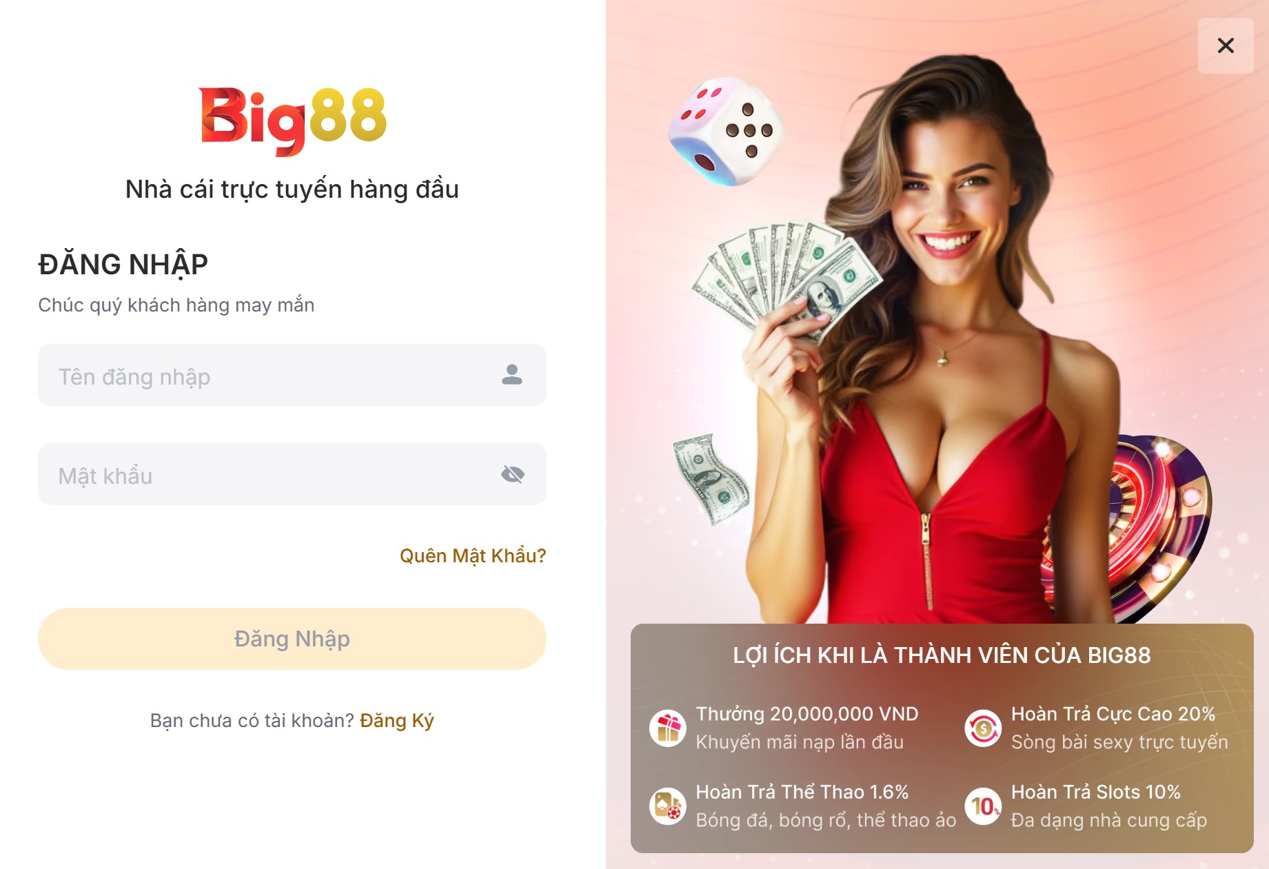 Khác với các nhà cái khác yêu cầu nhiều bước xác thực phức tạp, BIG88 cho phép người chơi đăng nhập và bắt đầu cá cược ngay lập tức. Điều này giúp tiết kiệm thời gian và tăng trải nghiệm người dùng đáng kể.