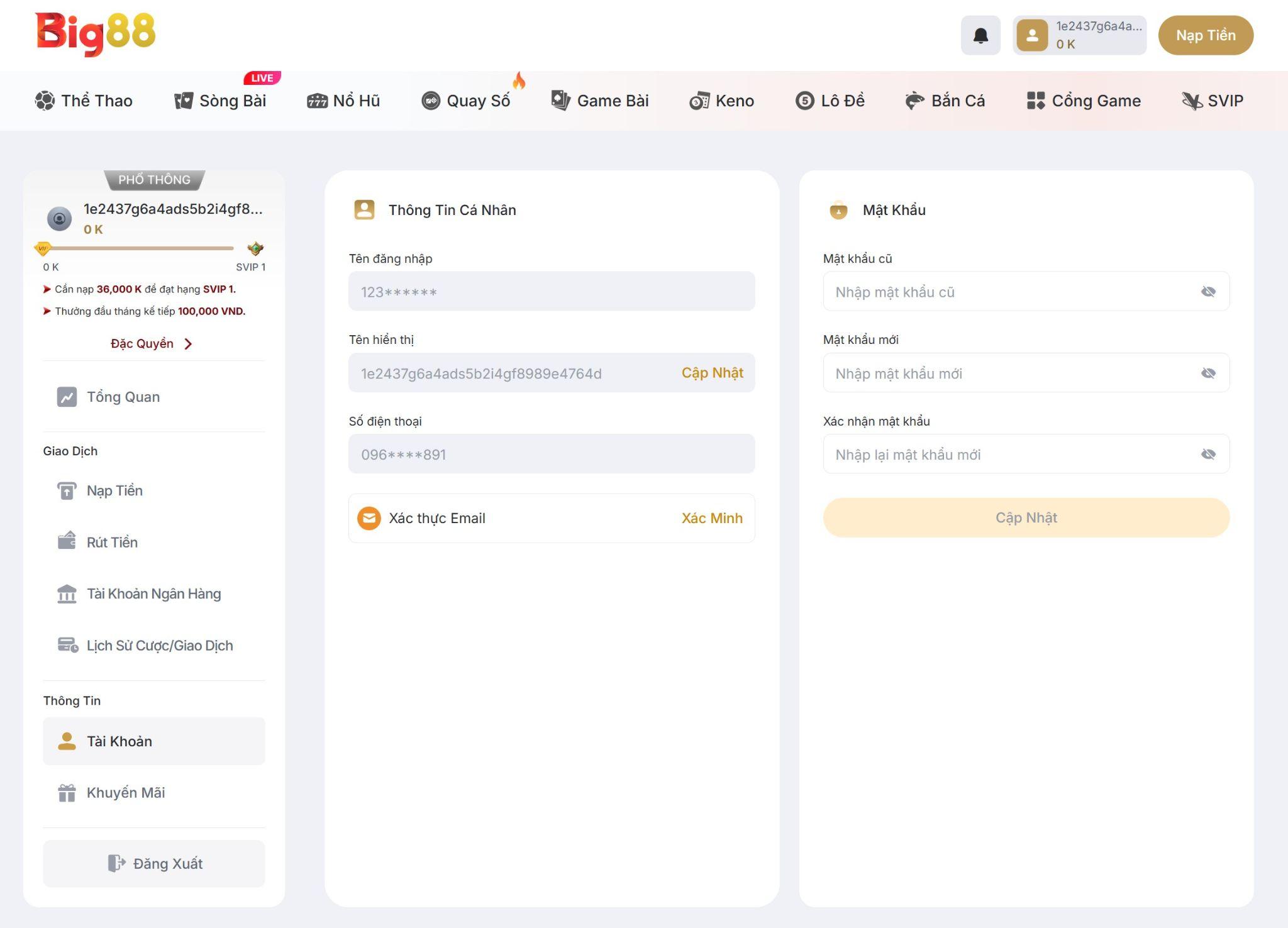 Hệ thống bảo mật BIG88 áp dụng công nghệ mã hóa SSL 256-bit cho mọi giao dịch đăng nhập và theo dõi các hoạt động bất thường. Tài khoản sẽ tự động khóa tạm thời sau 5 lần đăng nhập sai liên tiếp để ngăn chặn truy cập trái phép. Người chơi được khuyến khích sử dụng mật khẩu mạnh và không chia sẻ thông tin đăng nhập với bất kỳ ai để bảo vệ tài sản cá nhân.